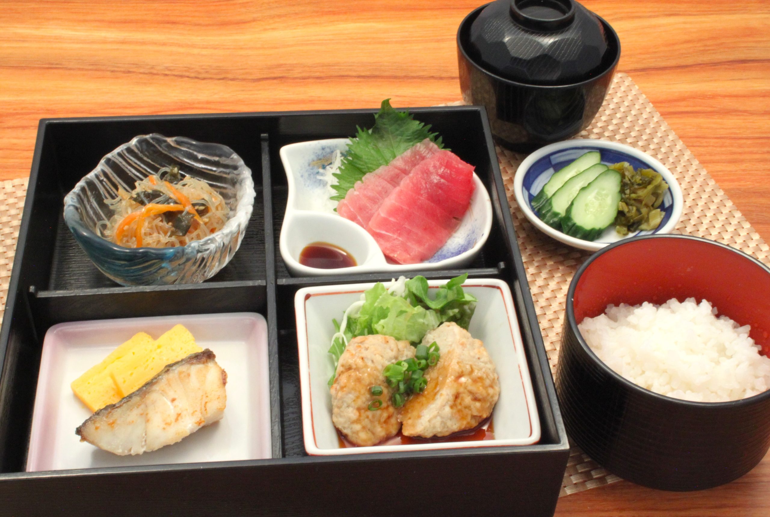 ※まぐろ刺身・つくば鶏つくね・白身魚焼き・小鉢が付きます。【数量限定】販売です。