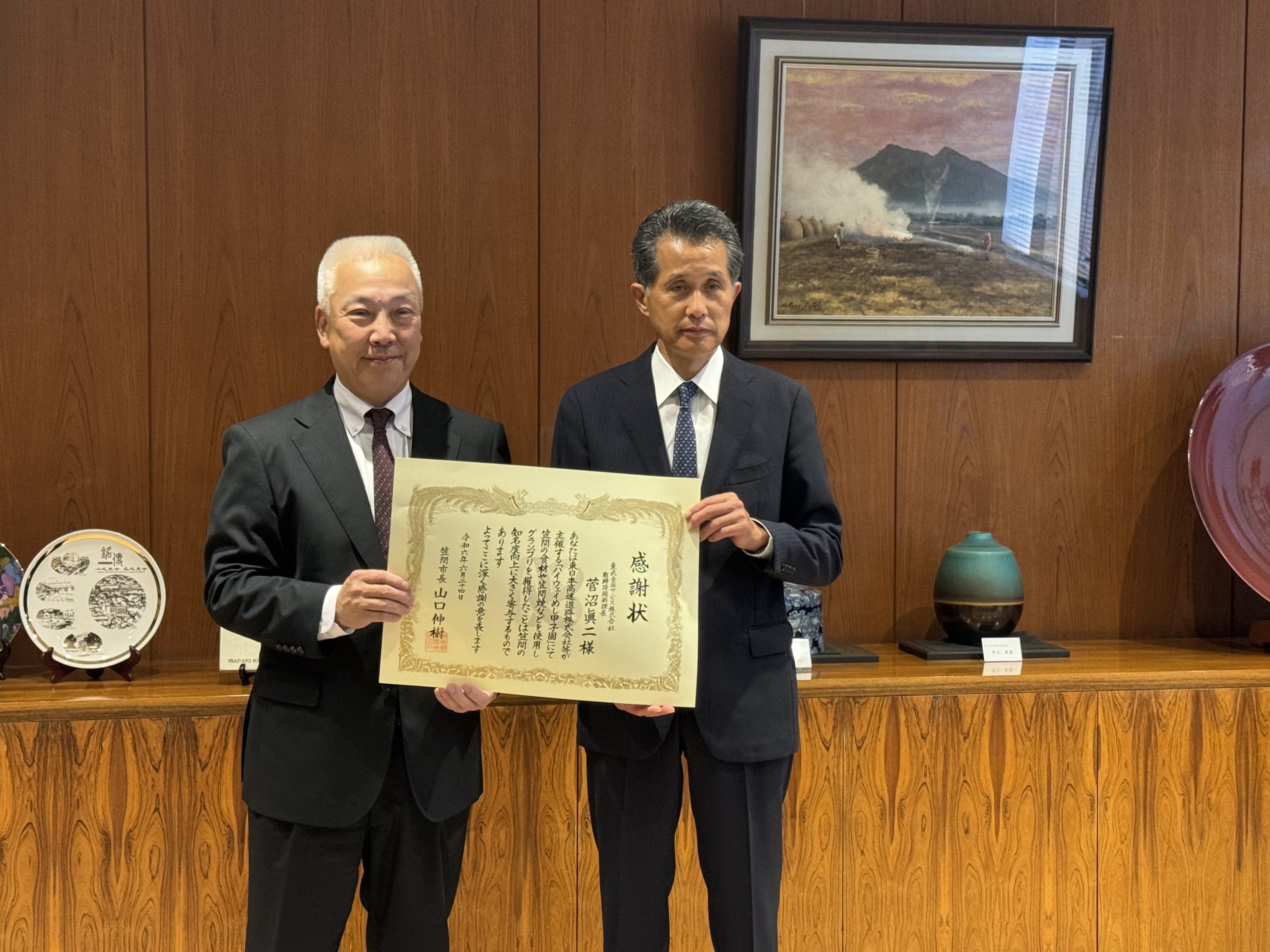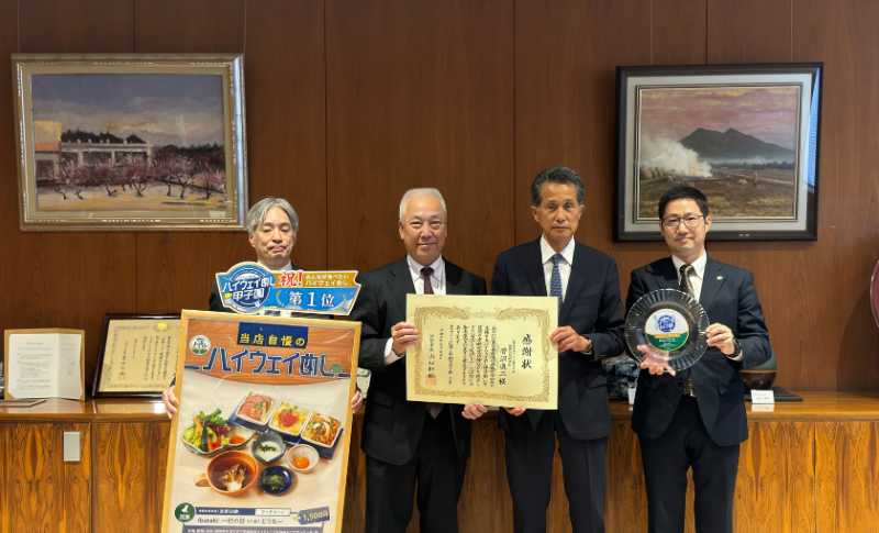 東武食品サービス株式会社(東京都墨田区向島)が受託営業をしている常磐自動車道友部サービスエリア上り線は、今年4月に行われた「ハイウェイめし甲子園」(東日本高速道路㈱、㈱ネクスコ東日本エリアトラクト主催)で「No.1ハイウェイめし」に選ばれた「Ibaraki ~杜の詩 いゃ!どうも~」が、茨城県産にこだわり、食材に笠間産の自然薯と舞茸、器に笠間焼を使用し、笠間市のPRに貢献したとして当社取締役総料理長菅沼眞二に対して、2024年6月24日笠間市長より感謝状が授与されました。