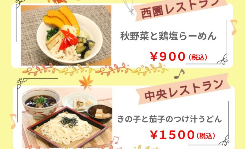 各レストランにて開催中。秋の味覚を使用した限定メニューをご賞味ください!