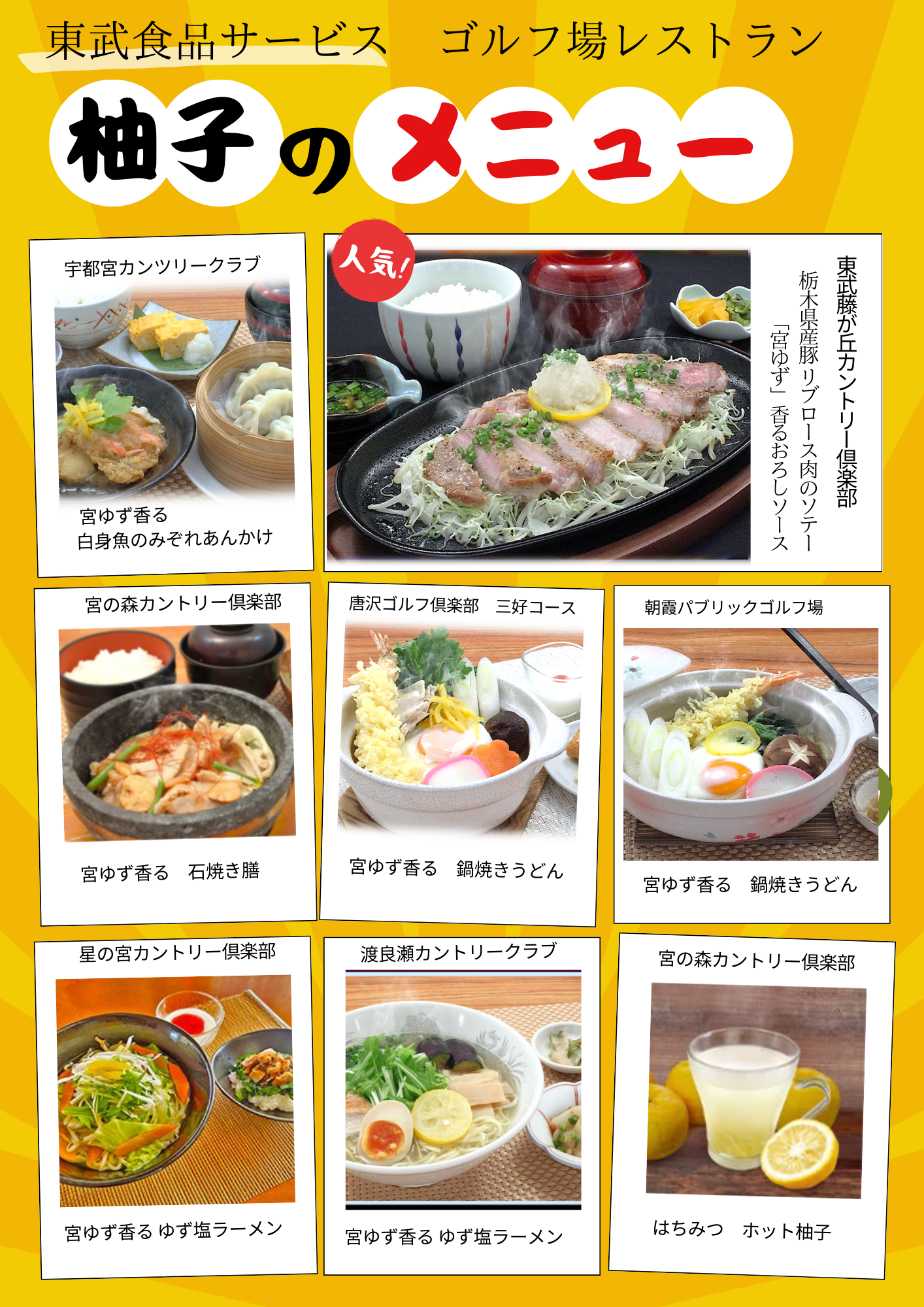 東武食品サービス株式会社(東京都墨田区)は、受託しているゴルフ場内レストランの各店舗にて、今回は、栃木県宇都宮市にある床井柚子園が栽培しているブランド柚子『宮柚子』を使用した商品を冬のフェアとして販売しております。