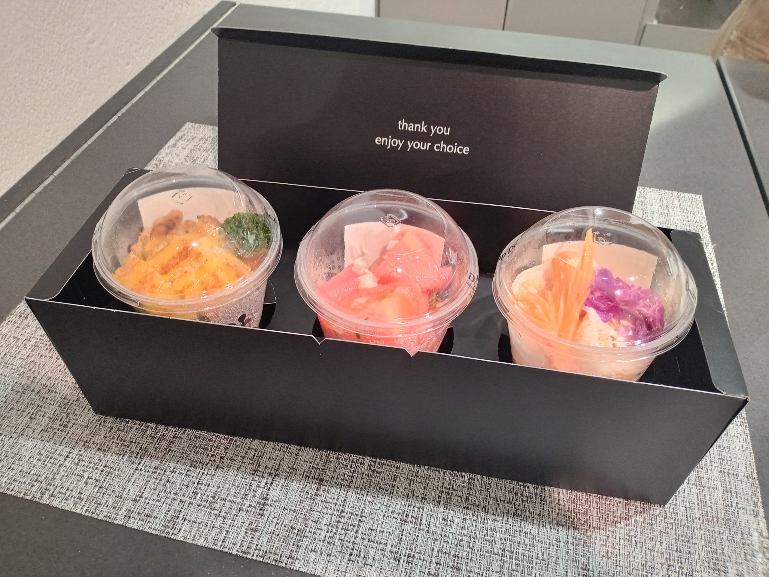 ※左からタンドリーチキン・トマトマリネ・エビマヨ