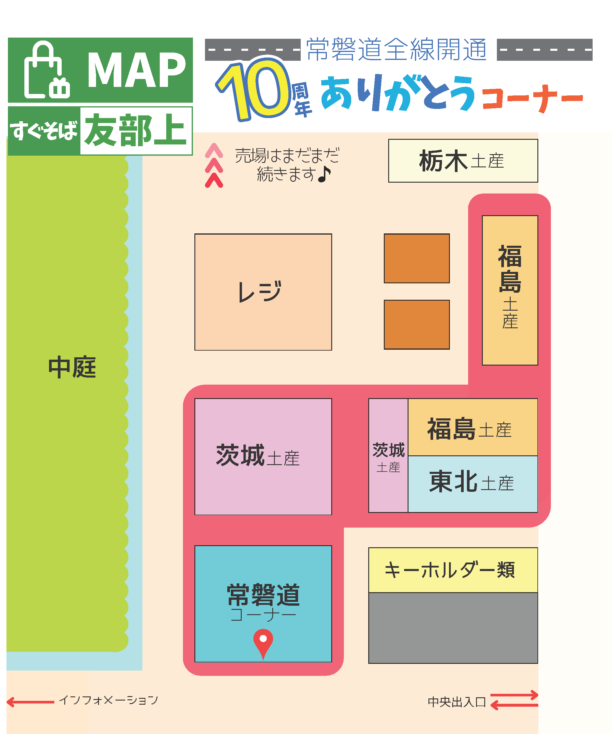 今回は【E6】常磐道全線開通10周年記念イベント開催に共感し、売店エリアに思考を凝らしたディスプレイを施し販売を行っております。