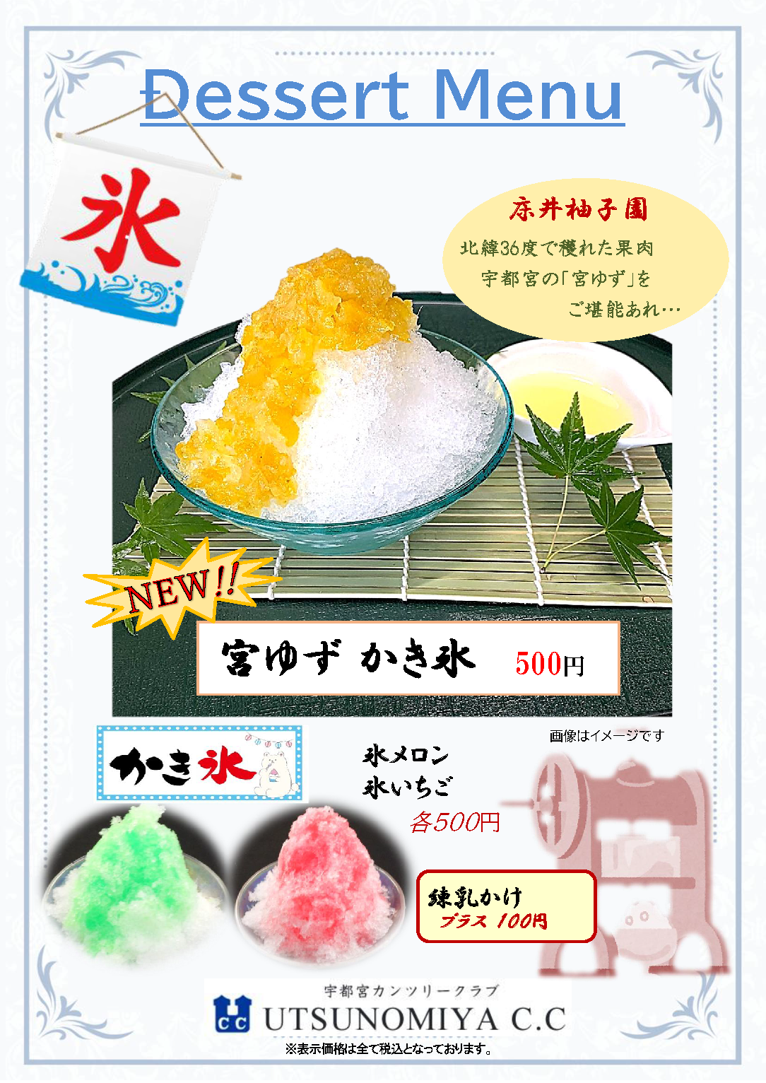 東武食品サービス株式会社(東京都墨田区)にて営業している宇都宮カンツリークラブ(栃木県宇都宮市)内レストランでは、栃木県ブランドの「宮ゆず」を使用した宮ゆずかき氷の販売を7月1日(火)より開始いたします。