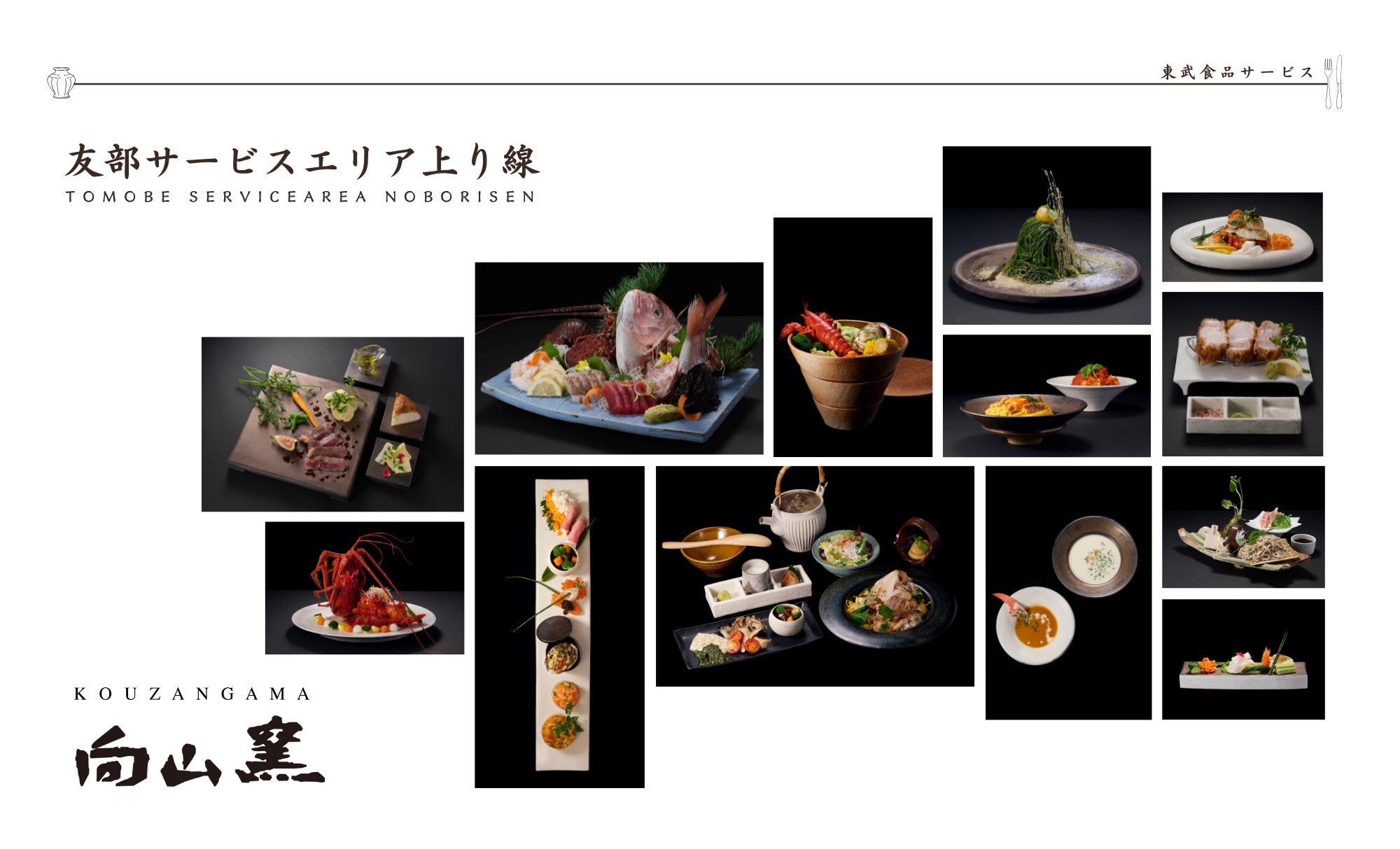 常磐自動車道友部サービスエリア上り線の珠玉の蔵では、笠間焼窯元「向山窯」の食器を使用しております。