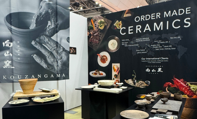 いばらき 国指定伝統的工芸品 笠間焼 窯元 『向山窯』様が、「第100回東京インターナショナル・ギフト・ショー秋2025/第18回 LIFE & DESIGN」に出展された際に、総料理長の菅沼が魂を込めた料理を提供しました。