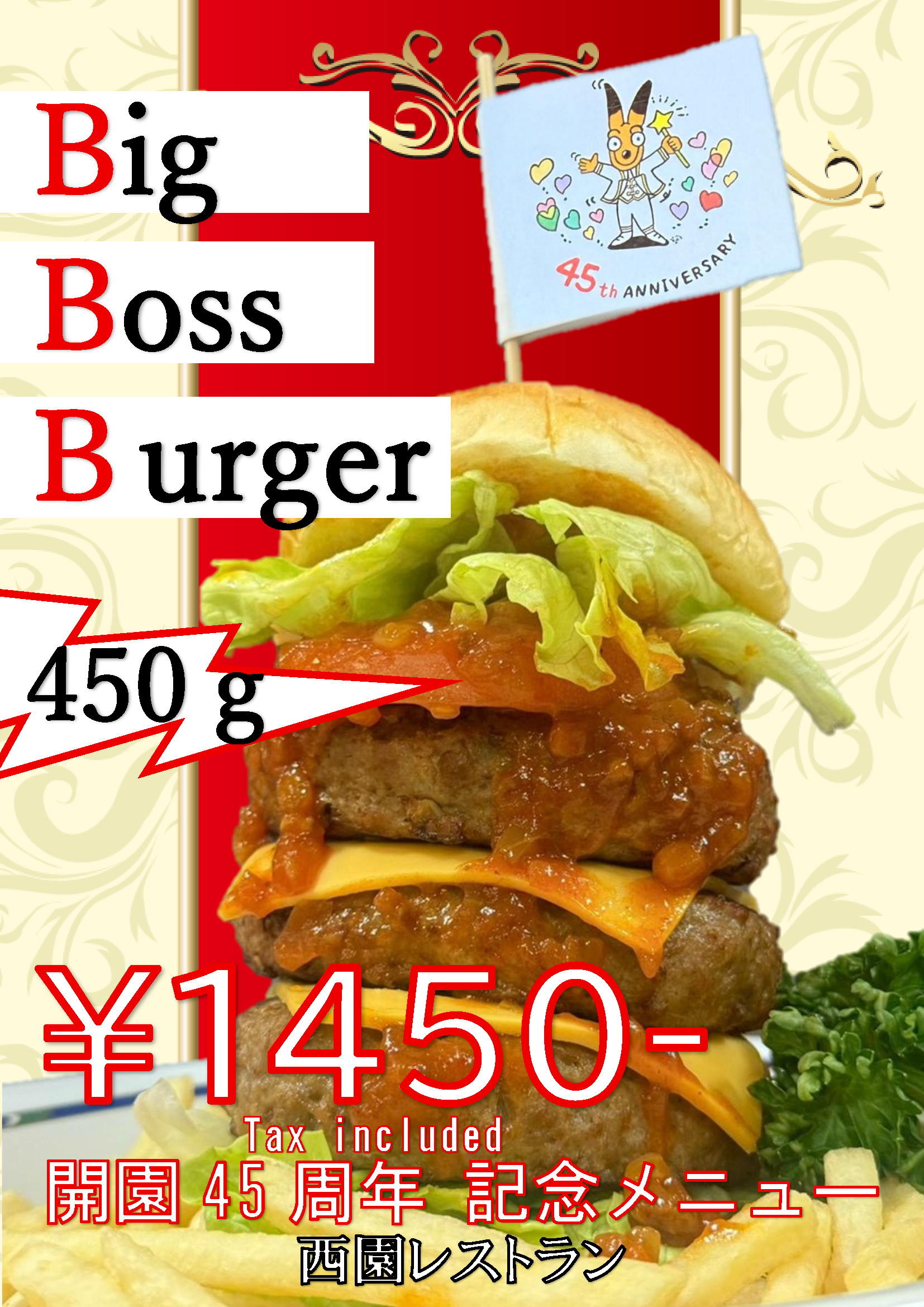 西園レストラン 450gボリューミーバーガー ¥1,450 【3.20金~4.12日】