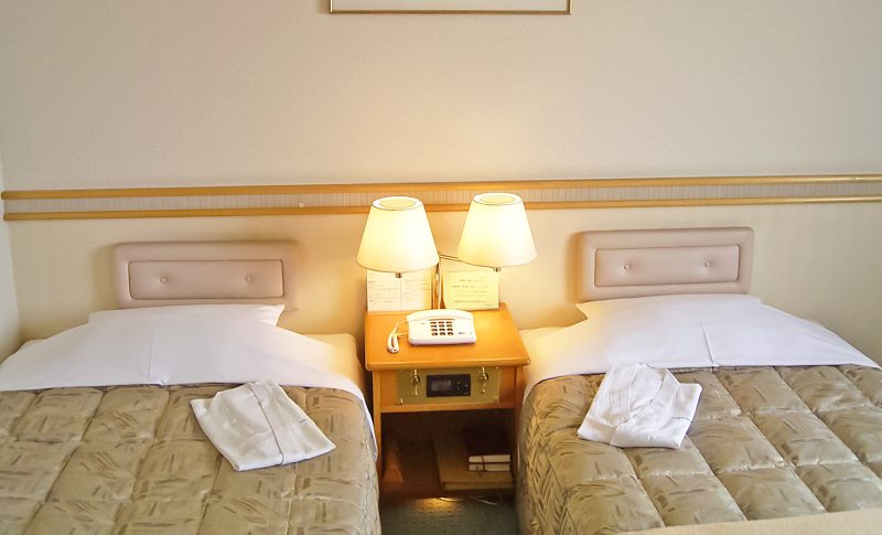 ベッドも少し大きめのゆとりあるサイズです。機能的なシングルルーム、広々したツインルーム、ファミリー向きの和室など目的に合わせてお選びください。