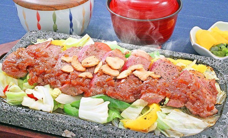 飛騨溶岩石の純国産溶岩プレート「美味焼」~Umayaki~を使用し、遠赤外線効果でじっくり焼き上げた牛サーロインスタミナ溶岩焼きなど、ボリュームと高級感を備えたメニューが愉しまれています。