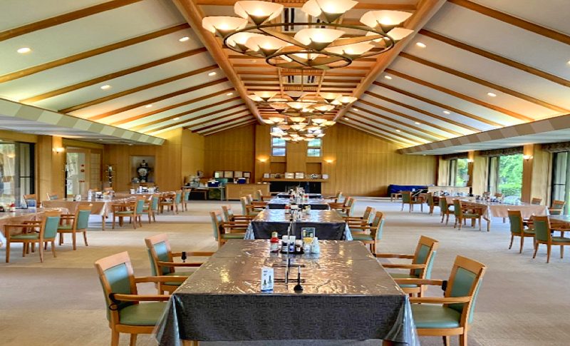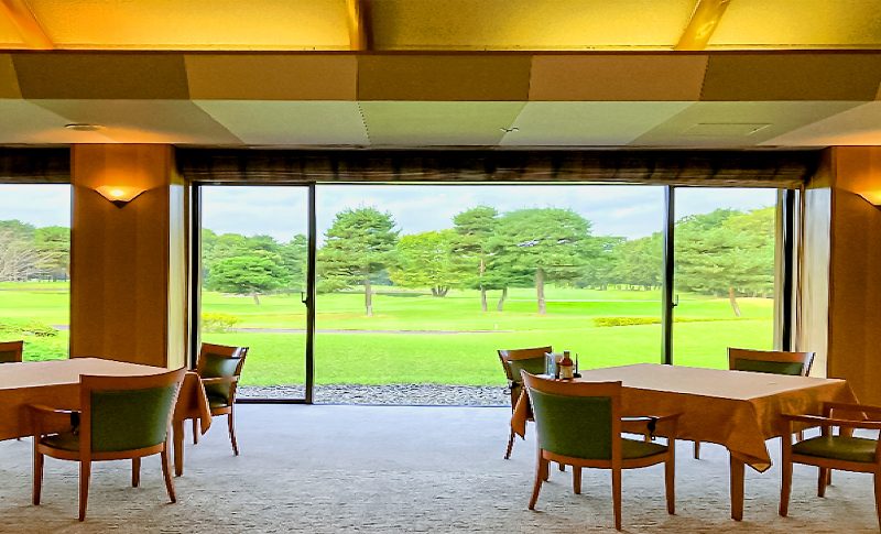 クラブハウスは平屋建てで広々としており、レストラン目前に広がるコースや中庭の景観が醸す落ち着いた雰囲気の空間でのご休憩やお料理をお楽しみいただけます。