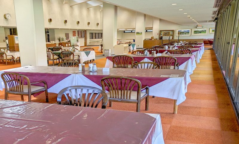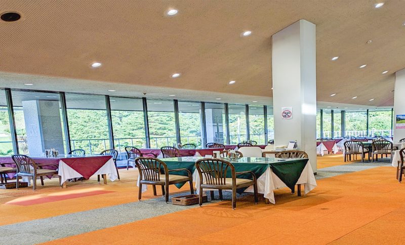 広々としたレストランでは大きな窓から豊かな自然を臨みながらのお食事がお楽しみいただけます。豊かな休日のひと時をお過ごしください。